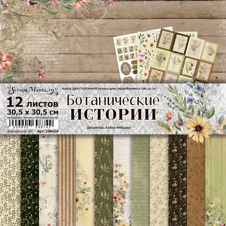 0 reviews for Двусторонний набор бумаги 30,5х30,5 см "Ботанические истории", 12 листов, 180 гр (ScrapMania)
