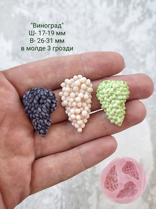 Молд "Грозди винограда", размер ширина 17-19мм, высота 26-31 мм, в молде 3 грузди
